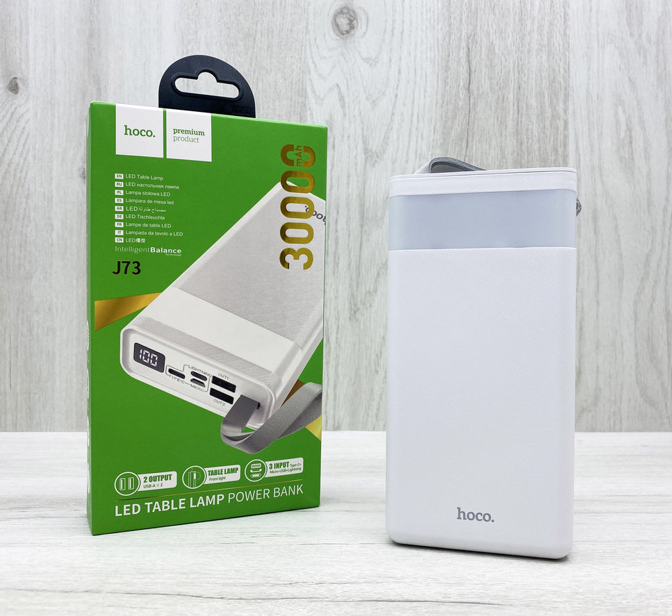 Внешний аккумулятор Power bank с фонариком HOCO LED Display Powerful J73 30000mAh имеет большую емкость – 30000 mAh и долгий период сохранения заряда, ёмкий заряд батареи позволит много раз зарядить ваши гаджеты.