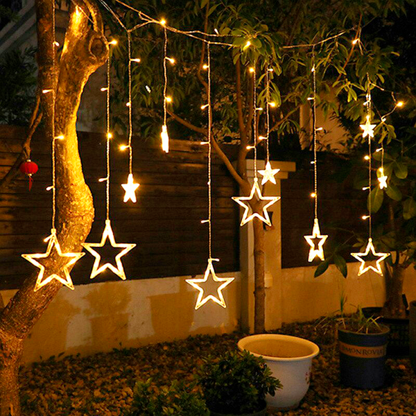 Размер и комплектация гирлянды позволяет щедро усеять мерцающими звёздами достаточно большую зону. С основного провода свисают светодиодные нити разной длины, что создаёт эффект каскадности. На конце коротких нитей размещены небольшие заполненные звёзды, на длинных — большие контурные. В каждой звёздочке установлены светодиоды, 8 режимов свечения позволяет создавать световой дизайн под настроение. Её длина 3 метра. Если нужен звёздный светодизайн на большой площади, её легко соединить с такими же моделями